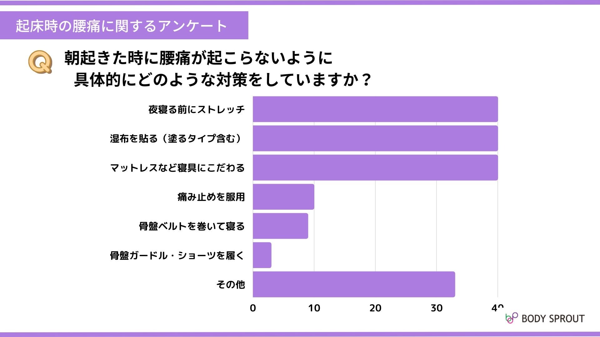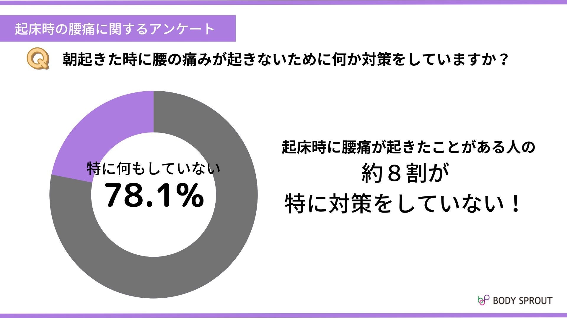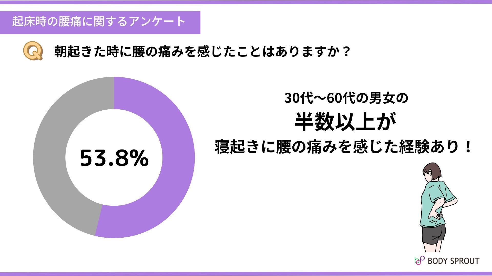 ※本リリース内容を引用される際は、「起床時の腰痛に関するアンケート・株式会社ボディスプラウト調べ」との明記をお願いいたします。
