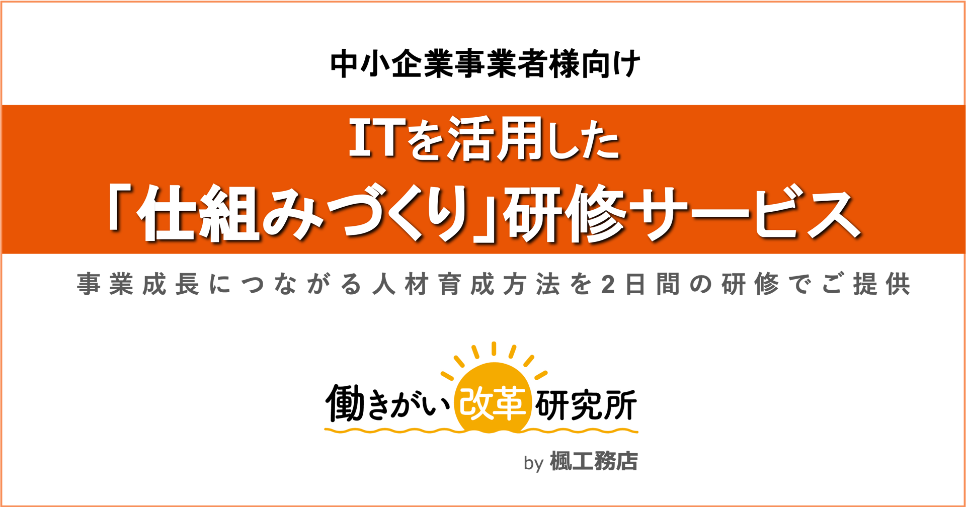 今回、社内の情報共有や人材育成に課題を感じている企業様の一助になるべく、これらの知見やノウハウを集約・体系化した「ITを活用した<仕組みづくり>研修サービス」として提供することといたしました。
