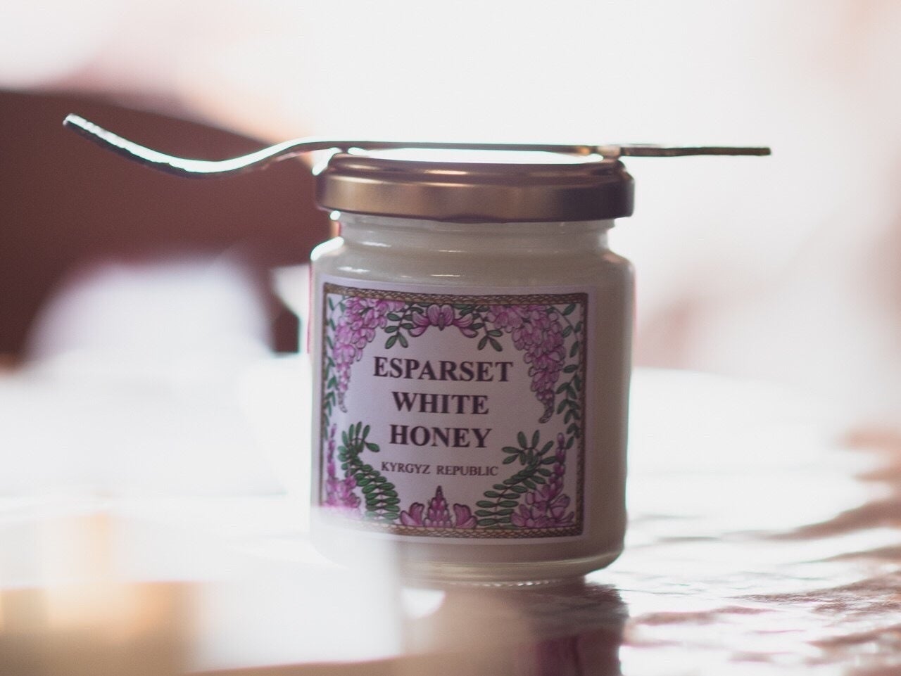 キルギスは「中央アジアのスイス」と称される美しい自然に恵まれた国で、そこで採れる「白いはちみつ」は非常に貴重な特産品です。標高の高い山地で育つシナノキやクローバーの花から採取され、バニラのような香りとクリーミーな口当たりが特徴です。現地では「自然の宝石」とも称され、多くの愛好者に親しまれています。