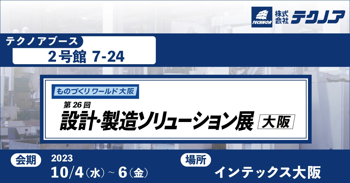 株式会社テクノア(本社:岐阜県岐阜市、代表取締役:山﨑 耕治、以下:テクノア)は、10/4~6にインテックス大阪で開催される「 第26回 ものづくり ワールド [大阪] 」に出展いたします。