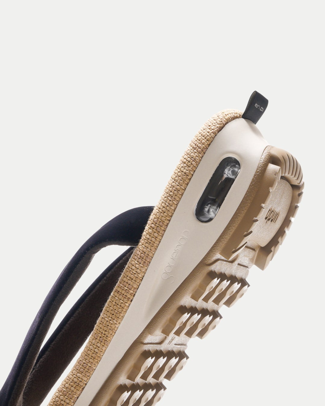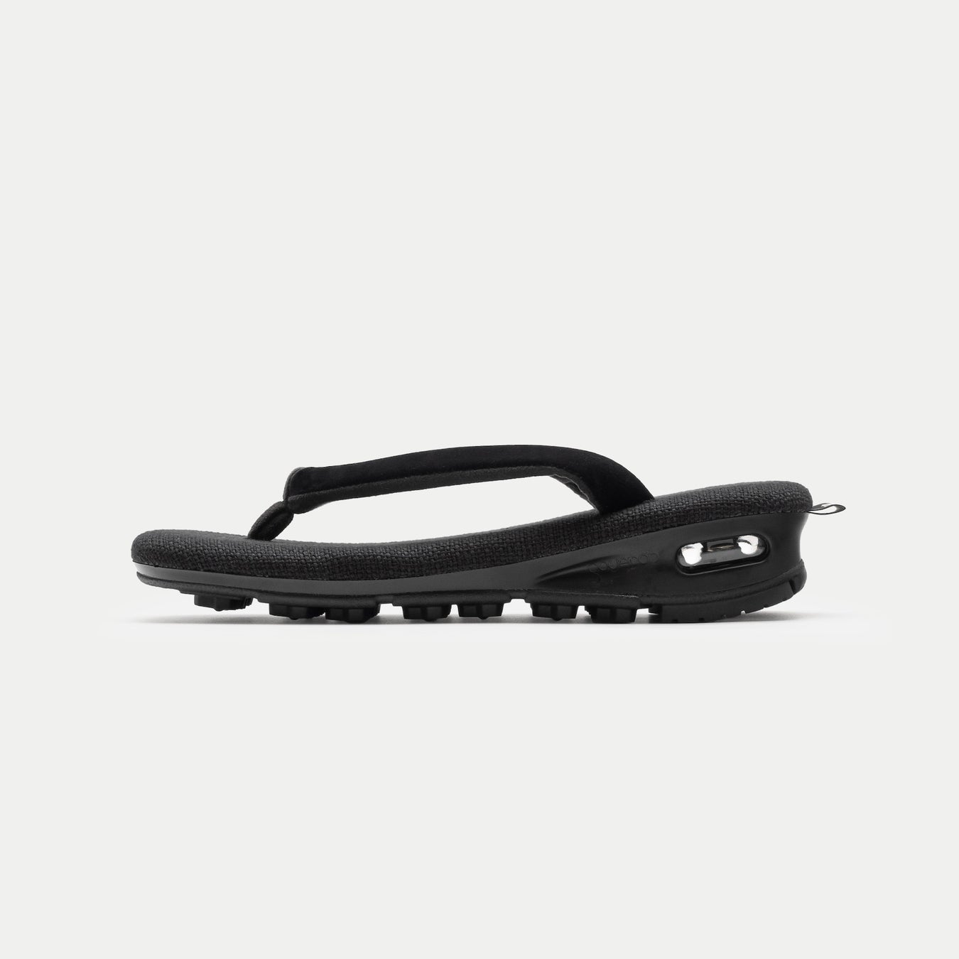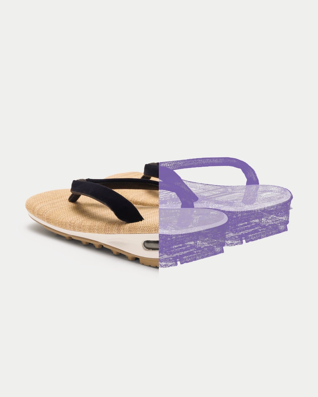 鼻緒とフットベッドの連結部分の隙間を最小限に縮小。そして「unda-雲駄-」を構成するパーツの接合を高い圧力で接着することにより、内部まで外の水分が浸透しづらい仕様に。