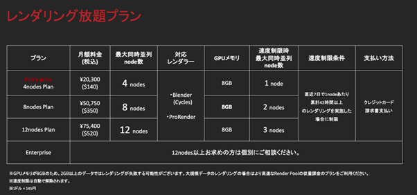 1.日常的にクラウドレンダリングを利用可能な定額プラン。