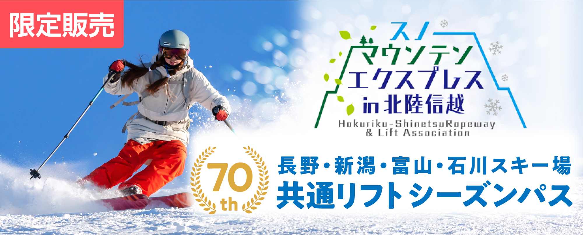 北陸信越山岳観光索道協会および(一社)長野県観光機構は、長野県・新潟県・富山県・石川県の4県にある対象スキー場を共通で利用できる「70th 長野・新潟・富山・石川スキー場共通リフトシーズンパス」専用サイトを開設し、2026-27シーズンに向けて販売を開始いたします。