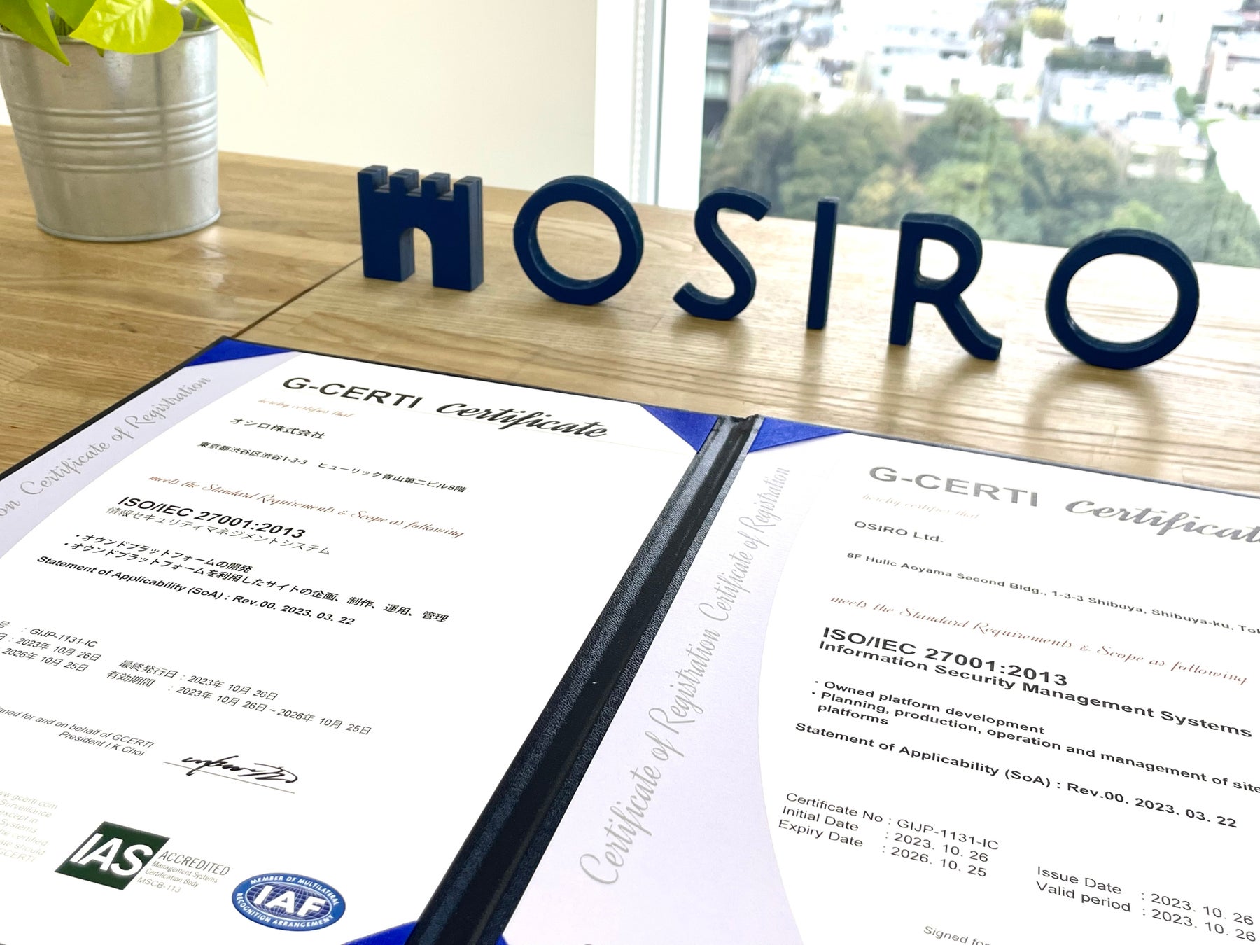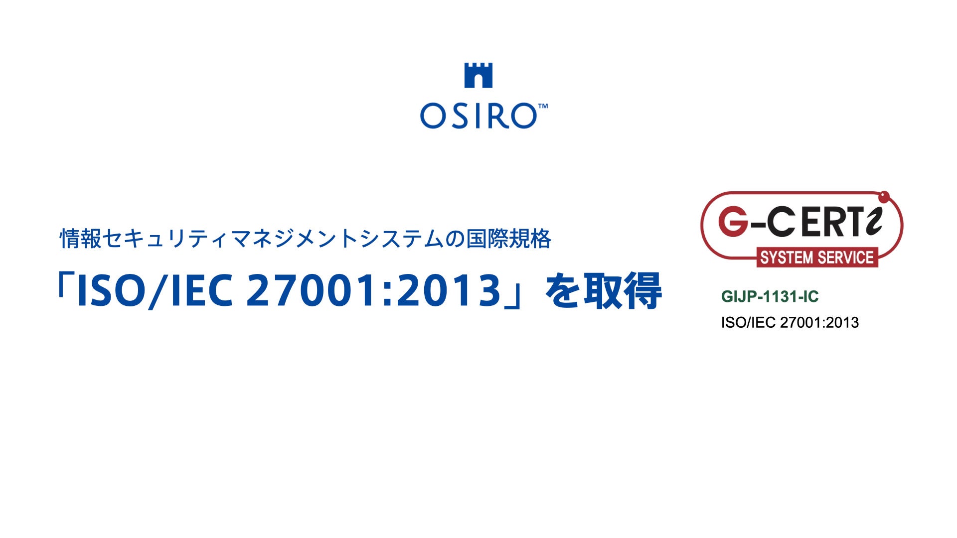 オシロ株式会社、情報セキュリティマネジメントシステム(ISMS)の国際規格「ISO/IEC 27001:2013」を取得