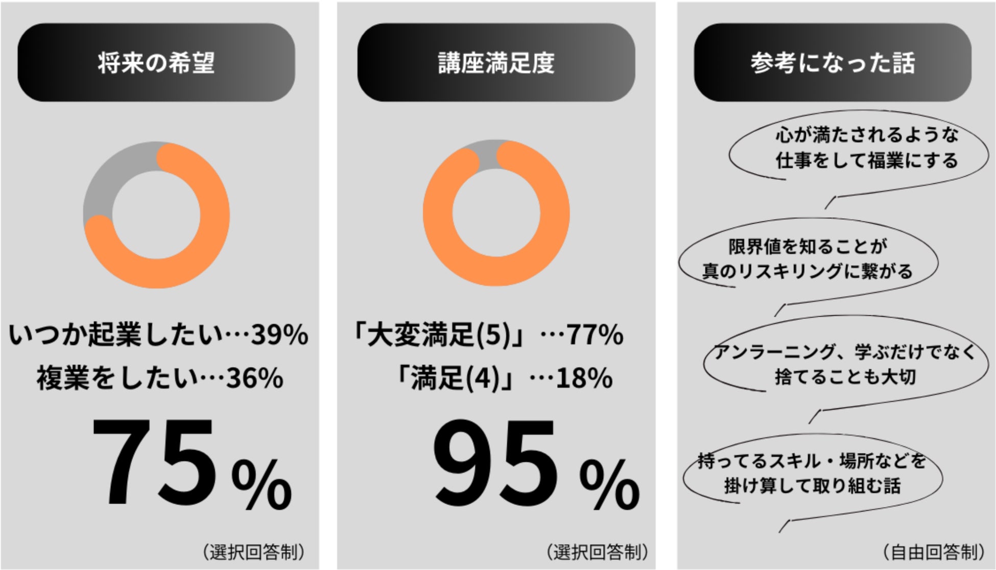 受講生の声:講座満足度95%、起業や複業希望者は全体の75%