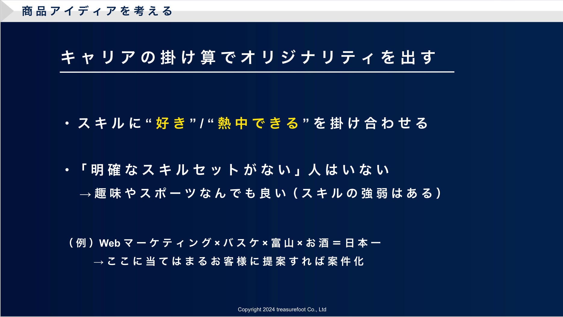 セクション①:キャリアの掛け算で「売れる商品」の種を考える