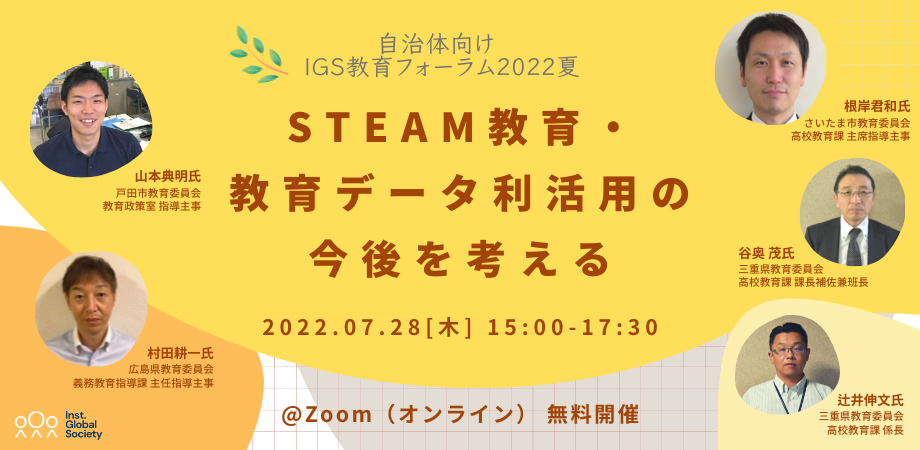 | タイトル | 自治体向け IGS教育フォーラム 2022夏〜STEAM教育・教育データ利活用の今後を考える〜 |