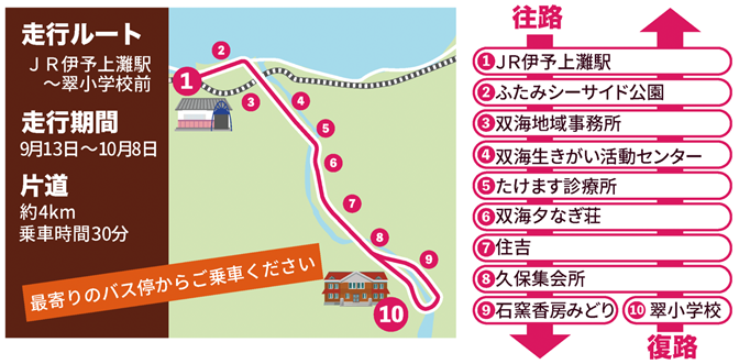 伊予市双海地域で自動運転バスとヘルスケアアプリなどを組み合わせた実証実験を実施