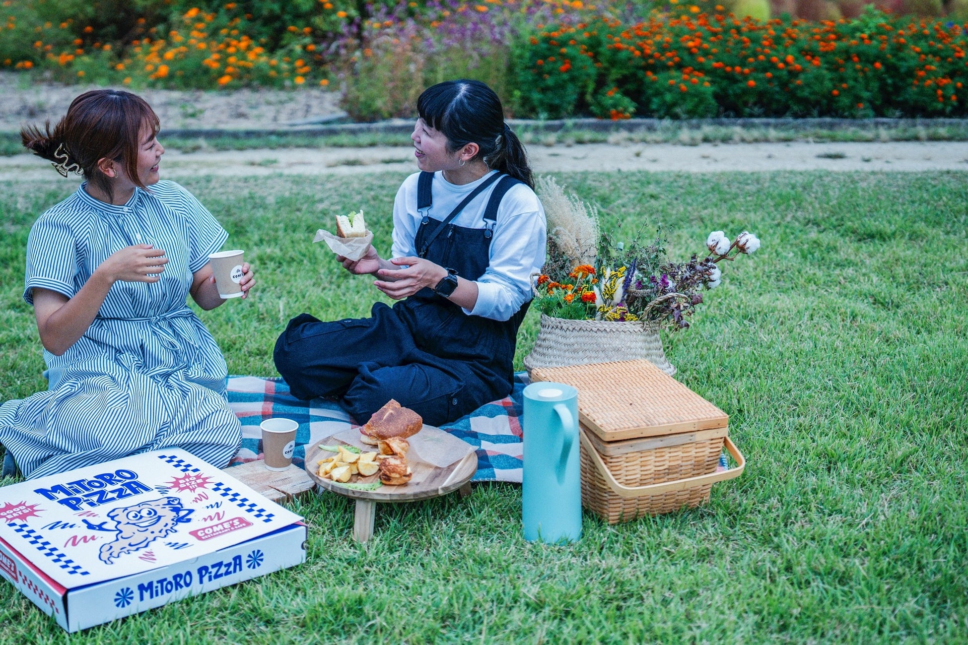 大きいサイズの1枚をテイクアウトして、みとろの丘園内の芝生の上や、屋内型植物公園「glass house」でピクニックもお楽しみいただけます。