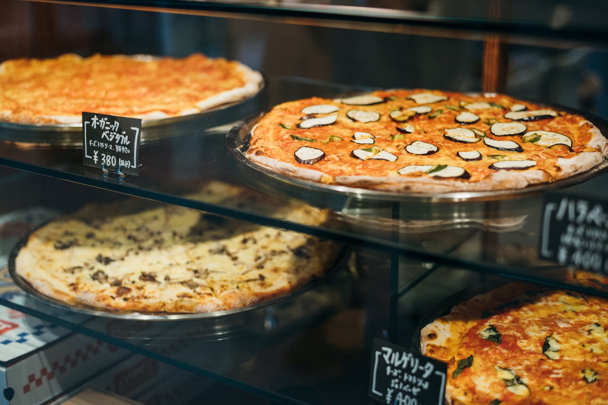 COME’S Restaurant & Cafeでは、直径約50㎝の大きなピザがオープン当初からの人気メニュー。地元農家さんから仕入れた農薬・化学肥料不使用のお野菜をふんだんに使用した「オーガニックベジタブルピザ」は、1ピース390円(税込)。