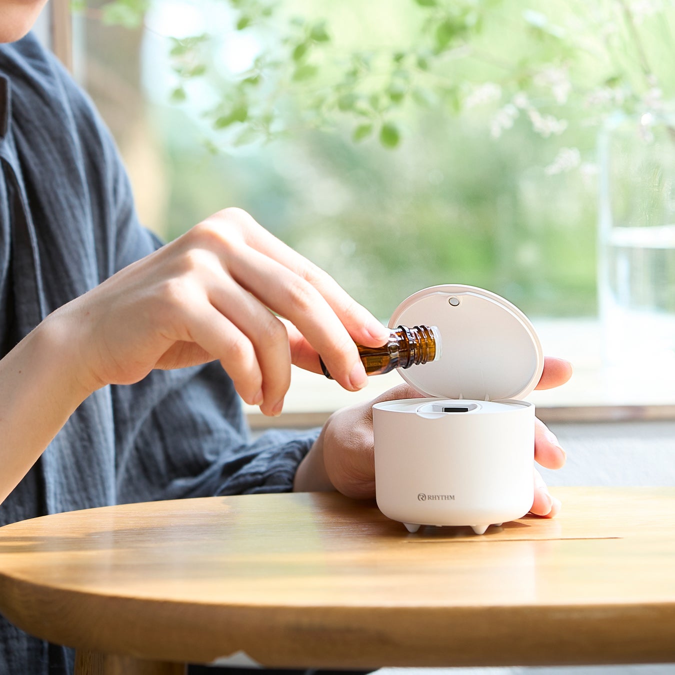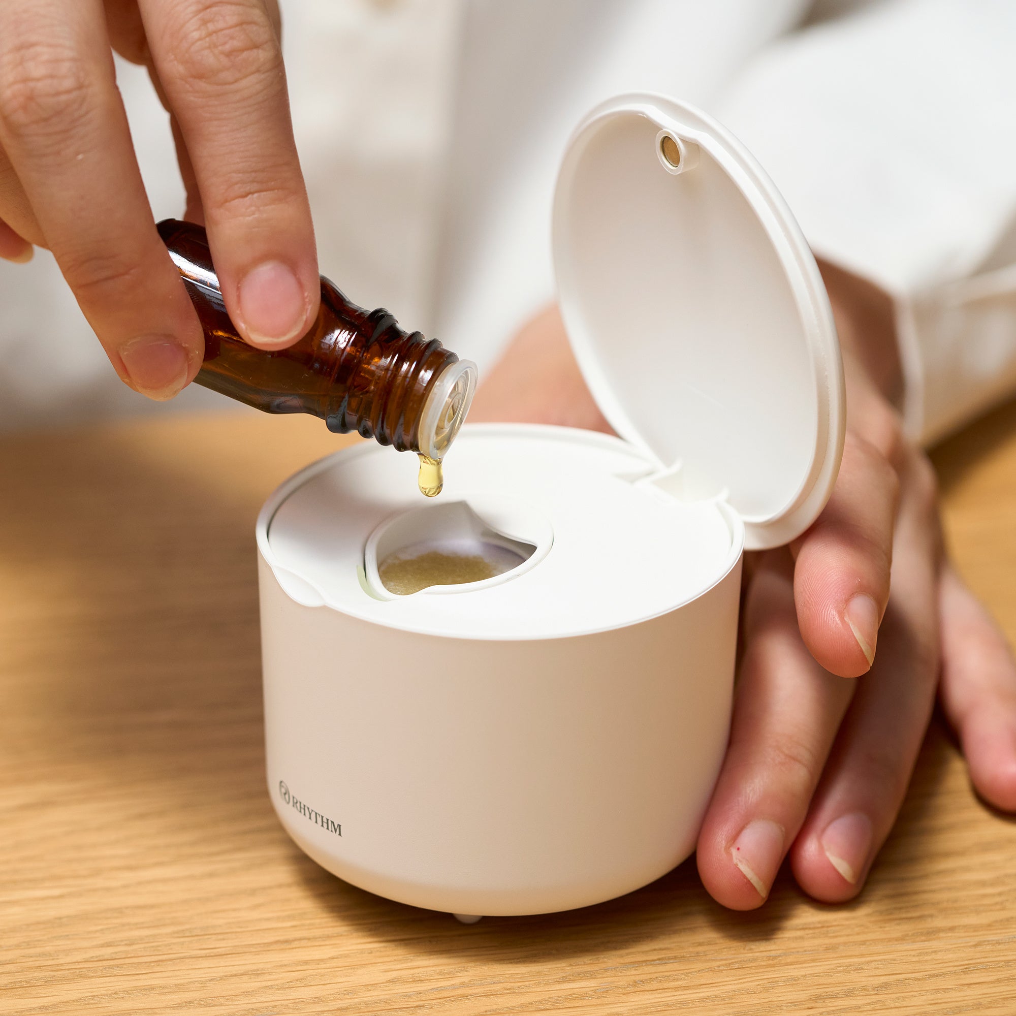 ふたを開けオイルを垂らし、香りを楽しむ。