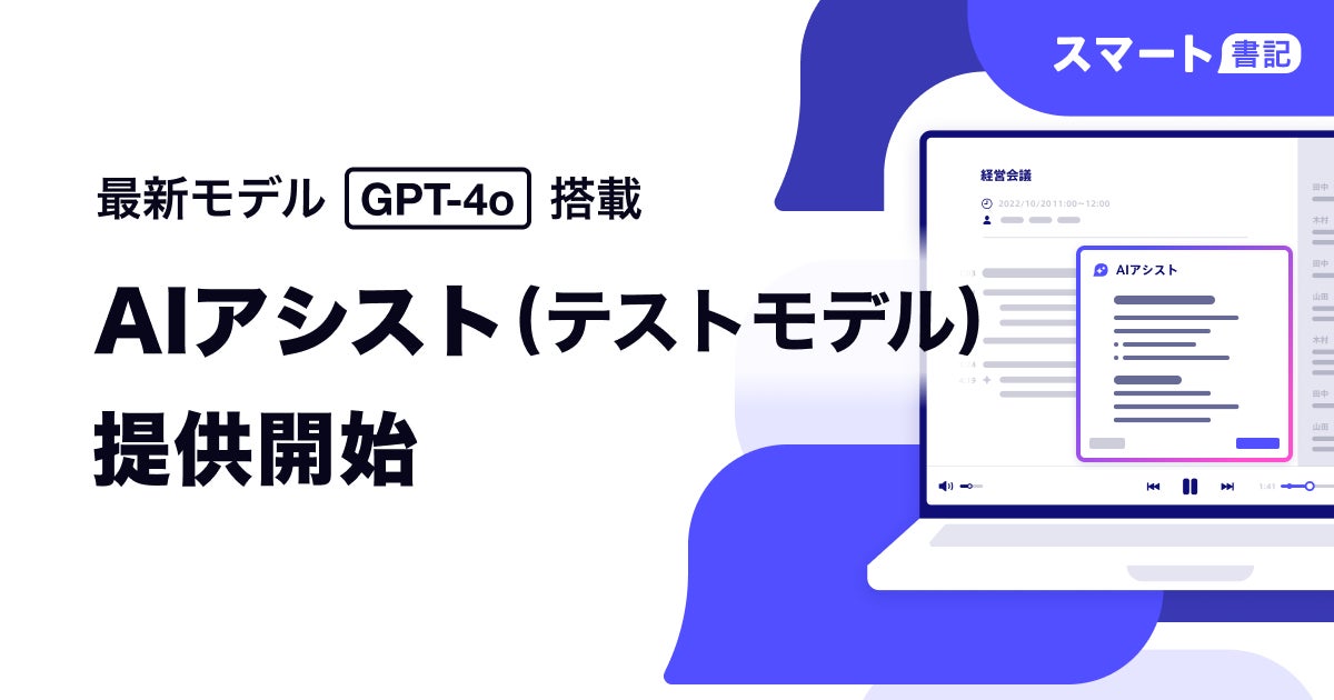 AI議事録サービス「スマート書記」最新モデル「GPT-4o」を搭載したAIアシスト(テストモデル)の提供を開始