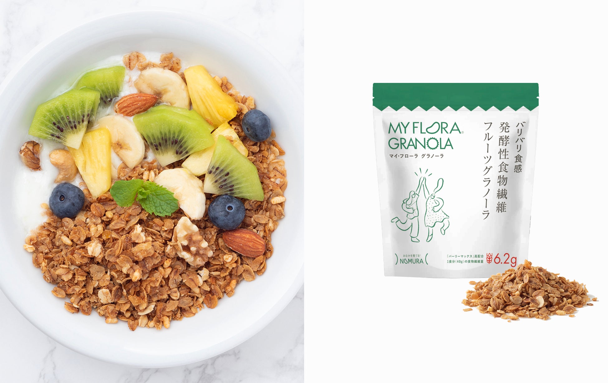 発酵性食物繊維が美味しく手軽に摂れるバリバリ食感「マイ・フローラ グラノーラ」新発売!
