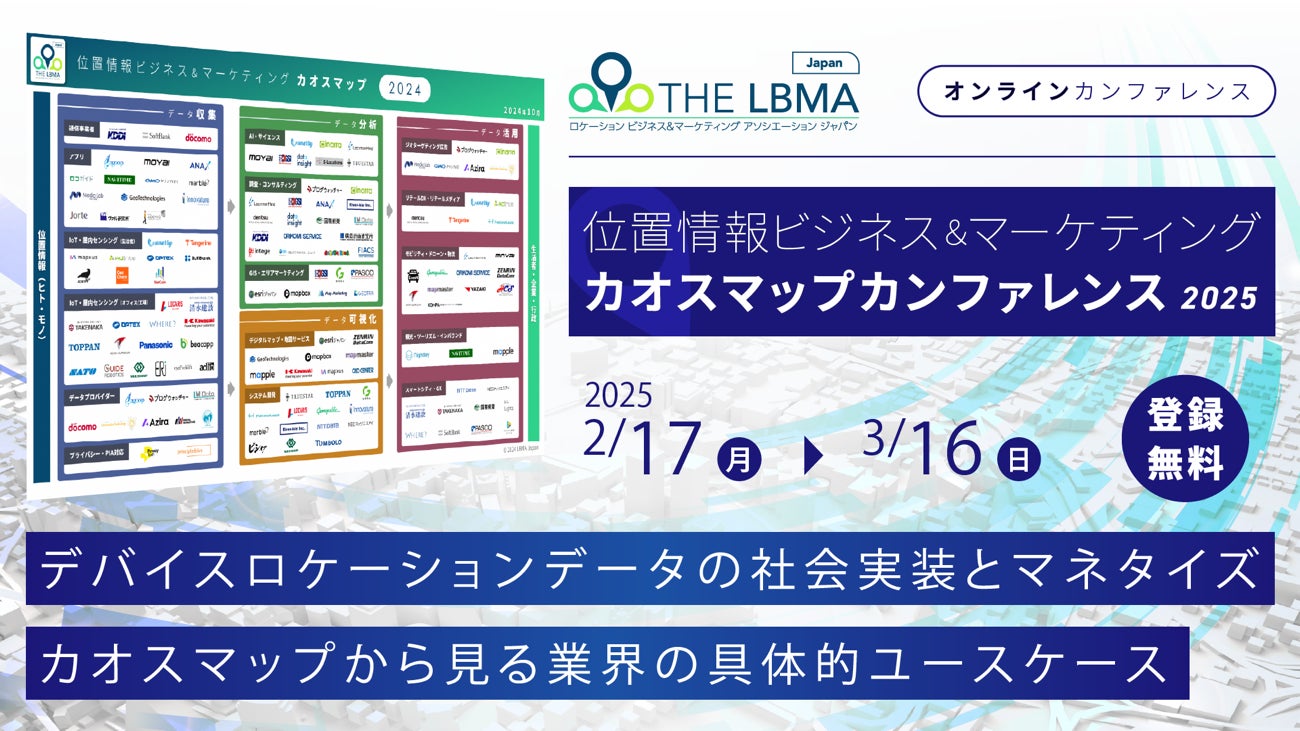位置情報データを活用したマーケティングやサービス施策の促進を目的に活動する93社の企業連合である、一般社団法人LBMA Japan(東京都千代田区/代表理事:川島邦之)は、毎年10月に作成・発表をしている「位置情報ビジネス&マーケティング カオスマップ」に基づき、本カオスマップに掲載されている各企業のうち、32社が登壇する、オンラインカンファレンスを開催します。