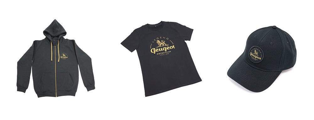 今回のショーで初公開の、プジョーモトシクルオリジナルグッズ「LEGEND」を出展。1898年にフランス・パリモーターショーで生まれた、現存する世界最古のモーターサイクルブランドとしての、歴史を感じさせるシリーズです。今回のショーでは「LEGEND」シリーズの中から、パーカー、Tシャツ、キャップを展示します。