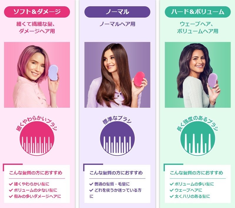 髪質・毛量に合わせて、3つのタイプから選べる、タングルティーザーの定番アイテム。