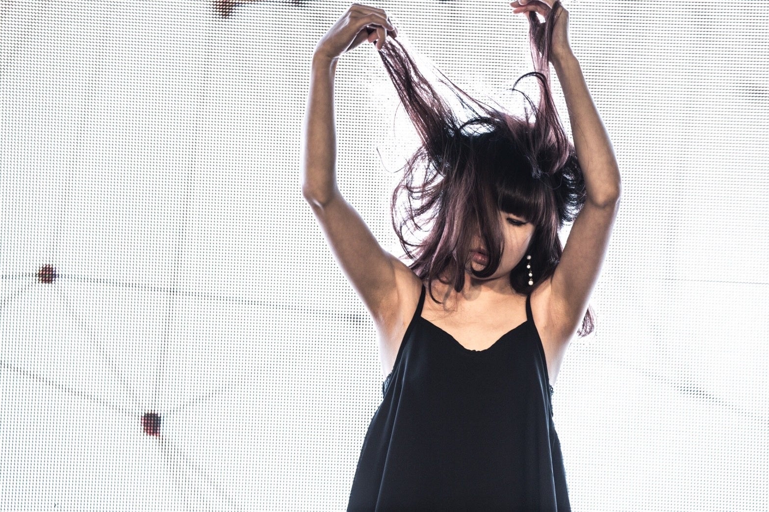 縦横無尽に奏でる確かな実力者。ギターでの弾き語りもトークの無邪気さとは打って変わった艶やかさを見せる。