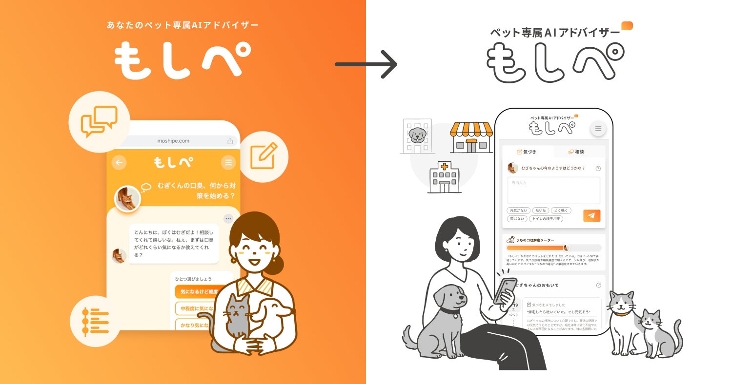 『もしぺ』は、これまで一般ユーザー向けに提供してきた知見を活かし、提供形態を刷新いたします。今後はペット関連企業を通じた付帯サービスとして提供を開始します。