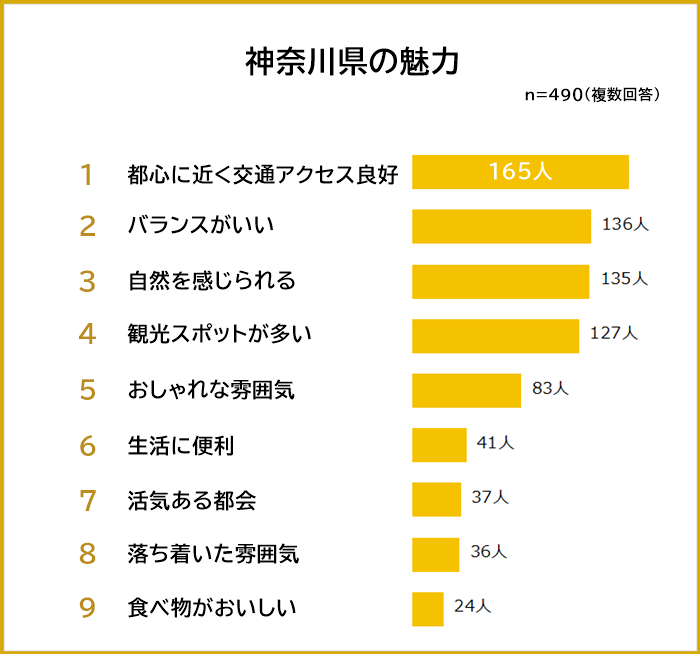 ・神奈川県の魅力1位は「都心に近く交通アクセス良好」