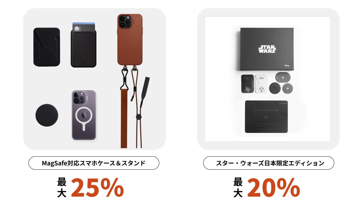 「Snap-Onスマホスタンド」や「フラッシュウォレット&スタンド」など、MOFT定番の大人気商品がフェア対象!