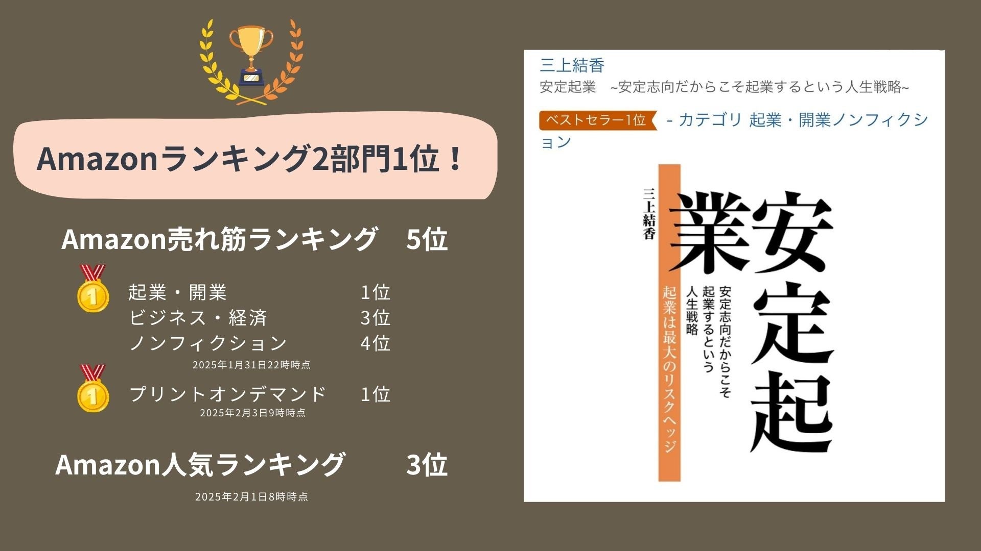 【Amazonランキング2部門1位受賞!】キャリアデザインの指南書『安定起業~安定志向だからこそ起業するという人生戦略~』がベストセラーにランクイン!