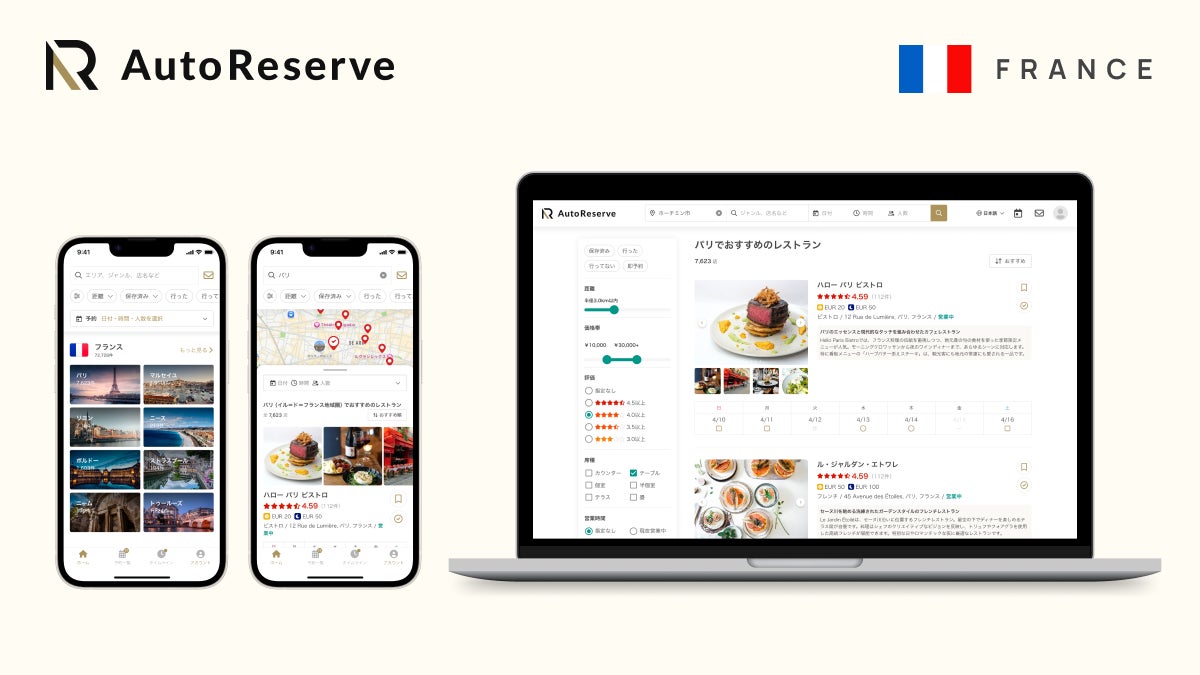 AIによるレストラン予約サービス「AutoReserve」が掲載国としてフランスを追加!予約困難な現地の人気店もスムーズに手配可能