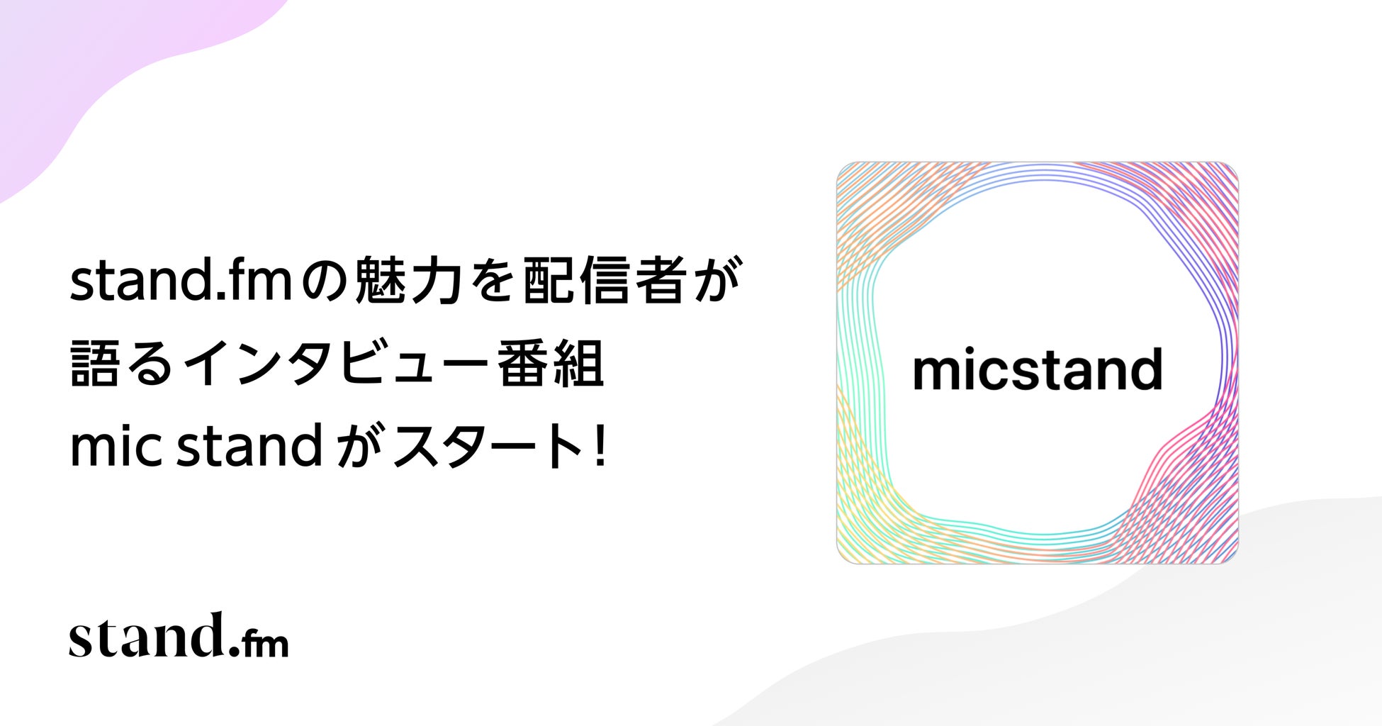 ・チャンネル説明:stand.fmの配信者に出演いただき、これから音声配信を始める方や既にstand.fmを配信中の方向けに、stand.fmから生まれたインタラクティブな体験や、収録・編集・配信の手軽さ、充実した収益化プログラムなどの様々な活用事例をお届けしていきます。「mic stand」はテキスト記事と音声配信にて無料でお楽しみいただけます。