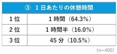 ◇1日の勤務時間は“7~8時間”、“1時間~1時間半”の休憩が理想