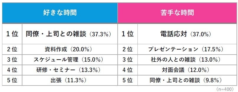 ◇会社で過ごす時間で最も好きなのは「同僚・上司との雑談」(37.3%)、
