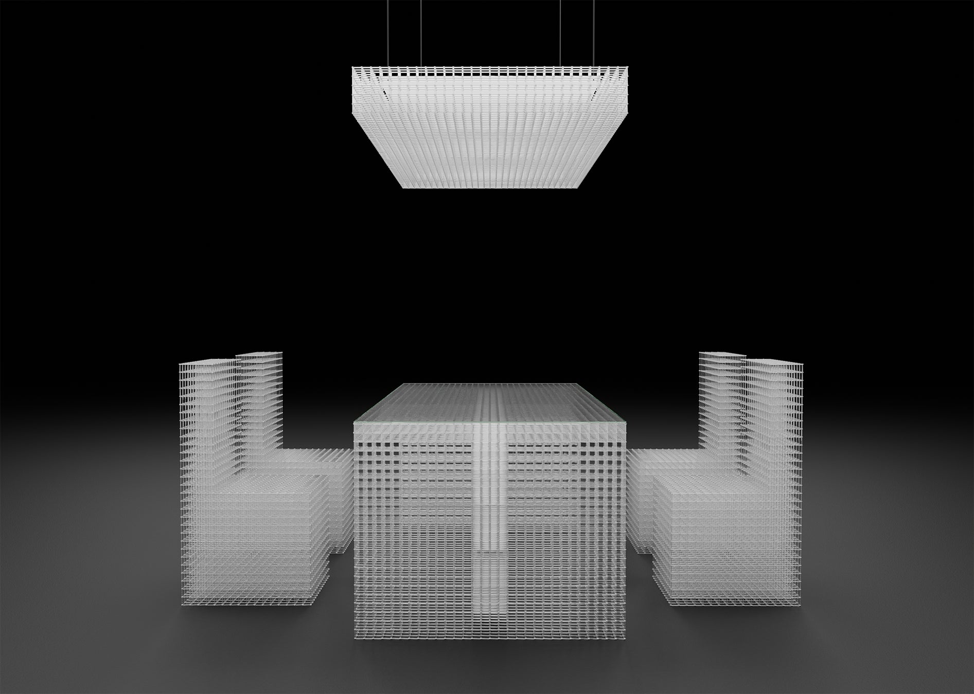 The First 130 - 3Dプリントを超えた、棒状の素材による革新的な立体造形技術をコアにしたブランド「130 (ワンサーティ)」は、特有の格子状の構造を飾ることなく縦横のラインだけで構成し、まるで空中から抽出されたかのようなプリミティブな形態のテーブル、椅子、照明の展示を行います。自由なデザインに対応し軽量かつ堅牢なこの構造技術は、使用後に分解、再素材化も可能。また、再構築時に新たなデザインや機能を付加することでアップサイクルされ、持続可能な未来を実現します。