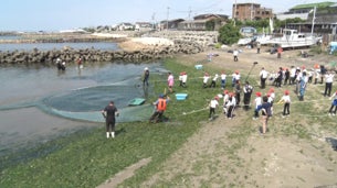 角南理事長が訪れたのは、大阪府阪南市の波有手海岸。脱炭素の救世主と言われるアマモの再生・保全に地域をあげている場所です。