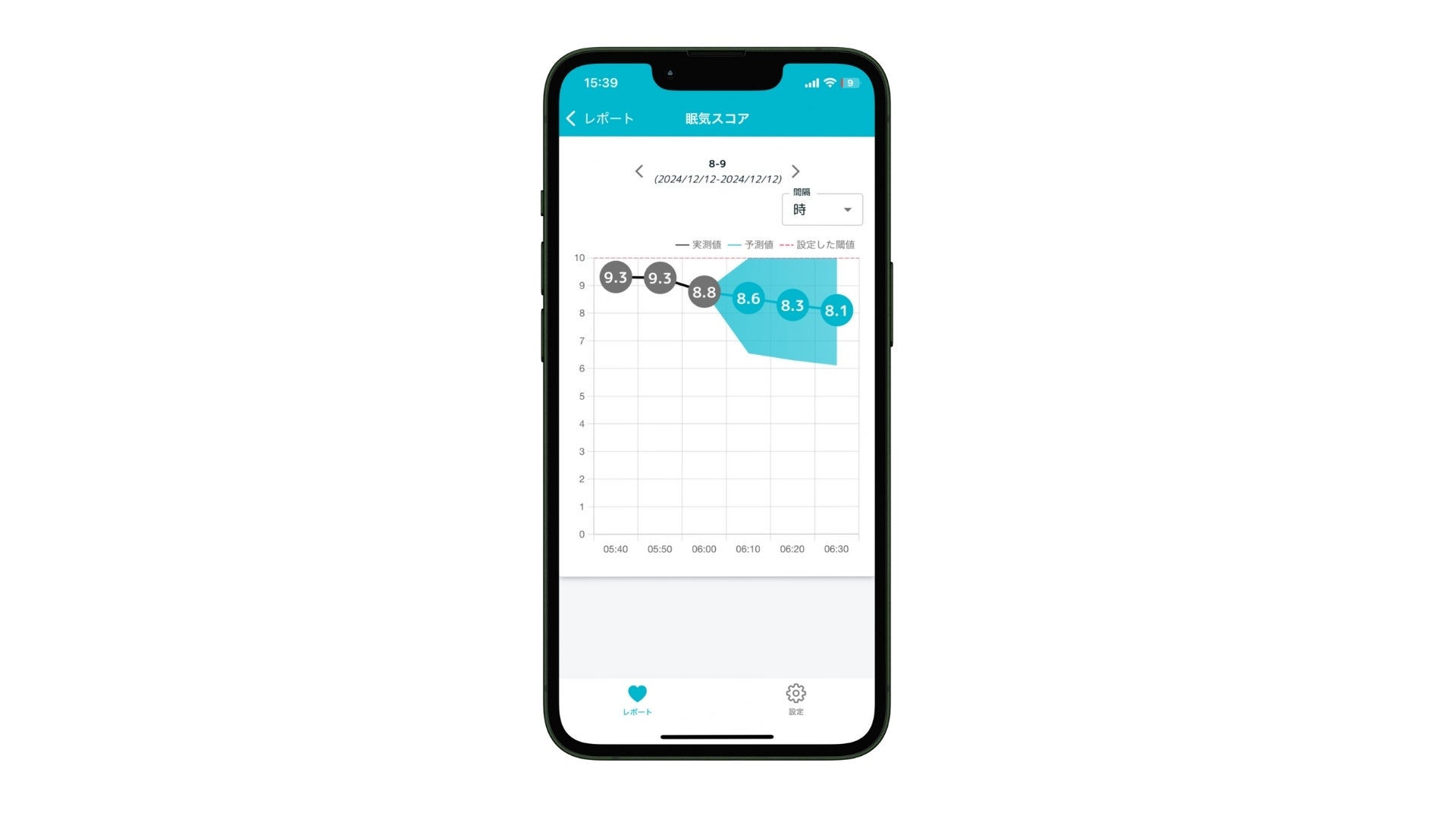 AIが「いまの眠気(実測値)」と「未来の眠気リスク(予測値)」を、0から10までの「眠気スコア」としてお知らせします※。