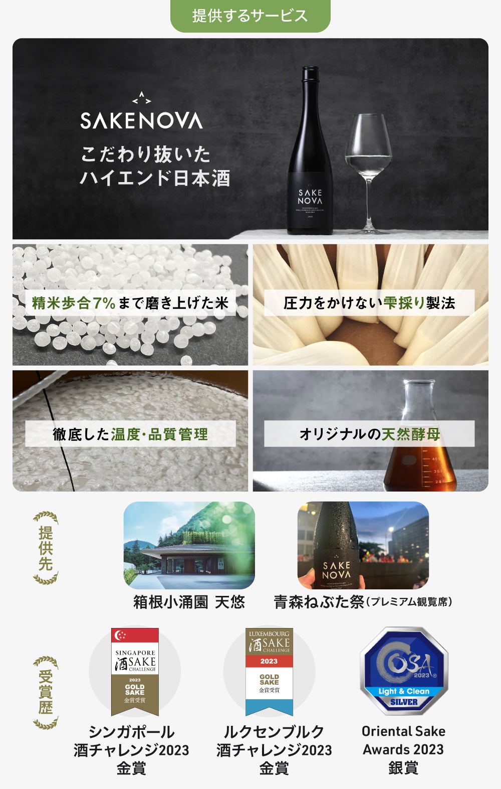 - ハイエンド日本酒ブランド「SAKE NOVA」の運営