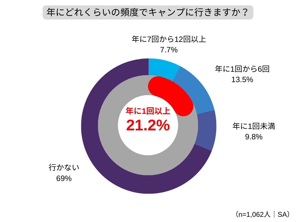 ・年に1回以上キャンプに行く人は21.2%、約半数がコロナ禍がきっかけ。