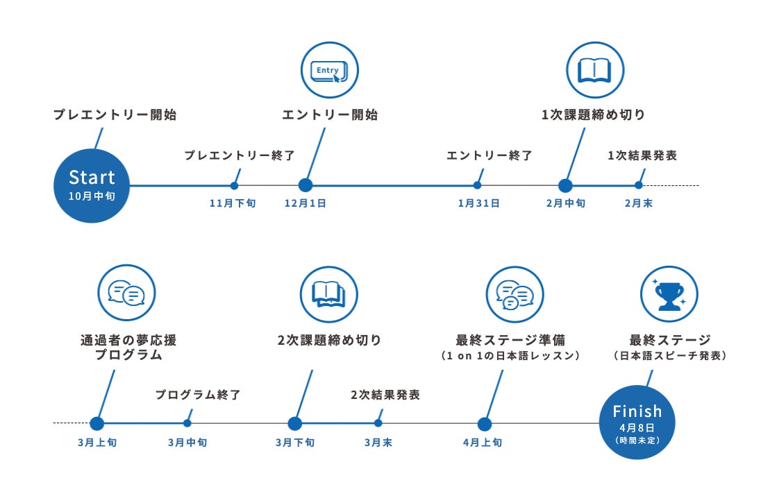 参加者には、日本語の会話コミュニティ・サービス「Sail」に無料でアクセスできるアカウントを付与し、日本語や日本文化を深く知る機会を提供します。また、選考通過者には弊社専属の日本語教師によるオンライン授業を無料で提供し、安心して最終ステージでの発表を迎えられるようサポートします。