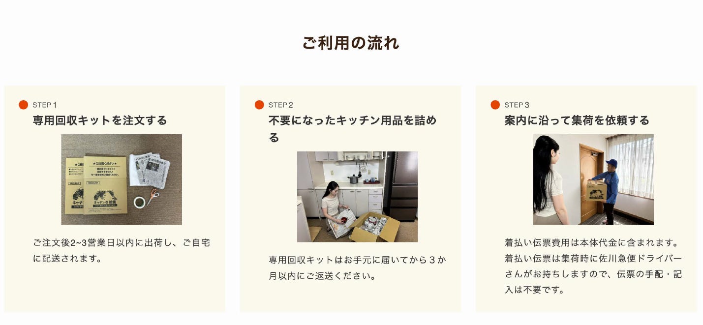 ご自宅やご実家のキッチン周りの不要品を簡単・便利に手放すことができるお片づけ商品です。