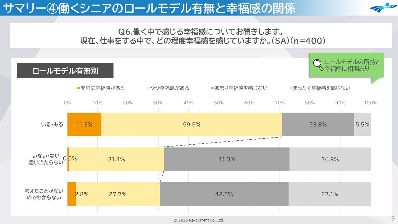 ロールモデルを持つシニア社員は幸福度が高い傾向に
