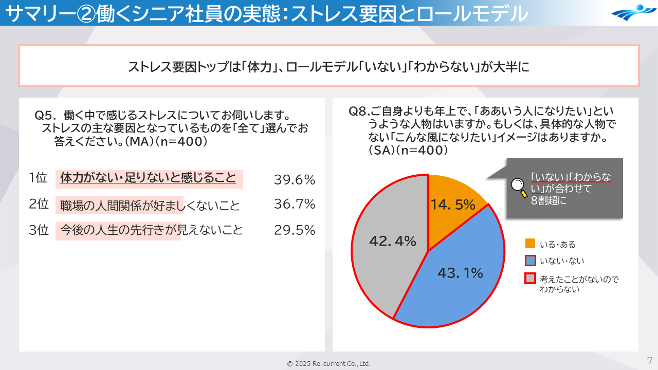 組織・人材開発支援事業を手掛けるリ・カレント株式会社は2025年9月、東京都の働く50代~70代就業者400人を対象に、「人生100年時代」への感じ方、会社からの支援の有無・働くことへの価値観など、シニア活躍の実状と本音に関する調査を行いました。