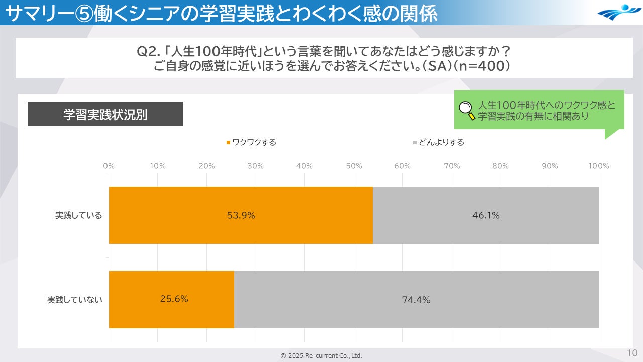 学習実践するシニア社員は人生100年時代「わくわく」する傾向に