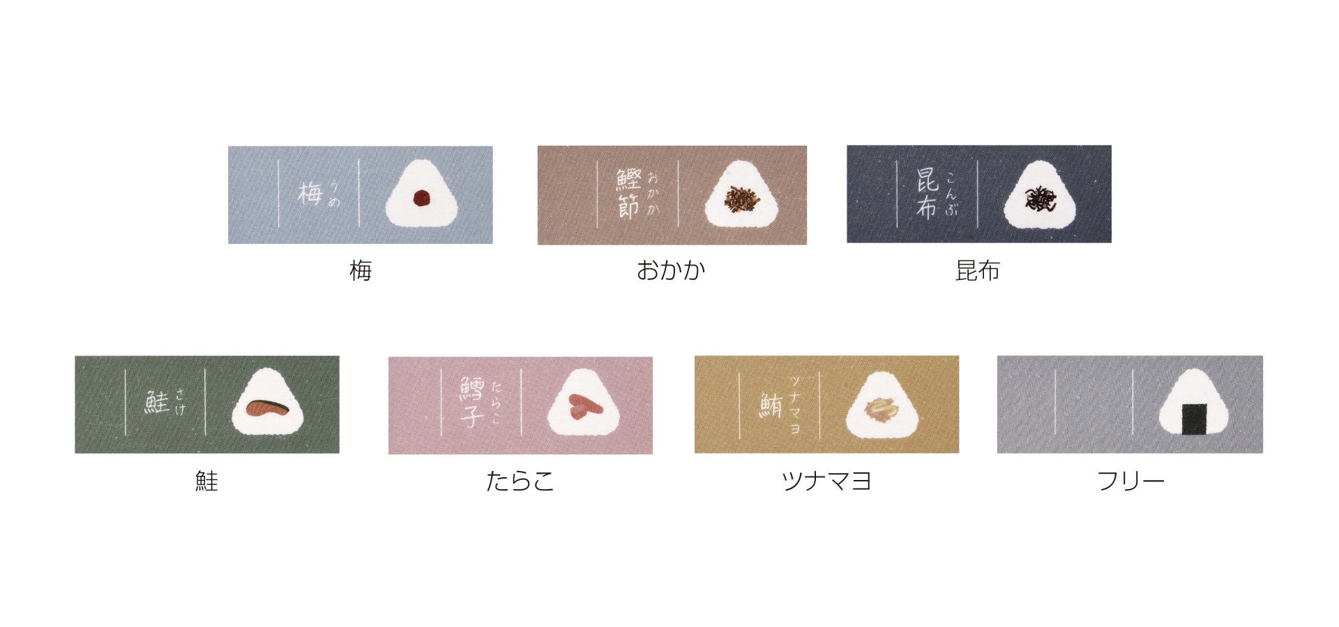 ラインナップは【梅】【おかか】【昆布】【鮭】【たらこ】【ツナマヨ】、そして好きな具を書き込める【フリー】の計7種類。1つで約160 枚使用できます。