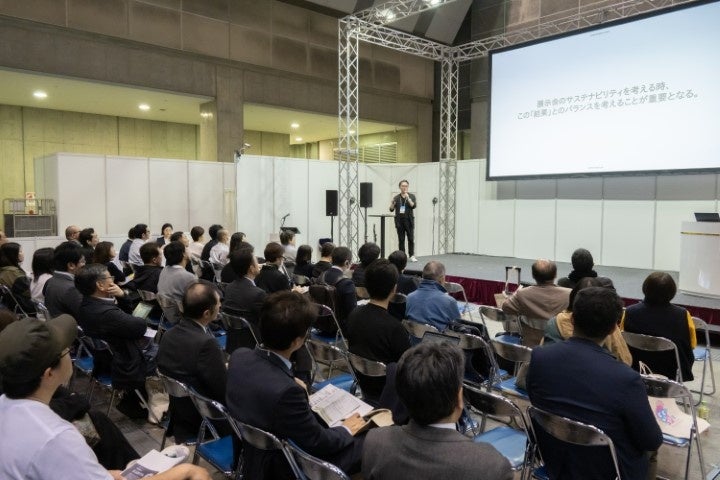 エコプロ会場内エコプロステージにて、次代の展示会をつくる「ブース」のデザインとその構法をテーマとして、弊社代表竹村尚久が単独でセミナーを実施しました。