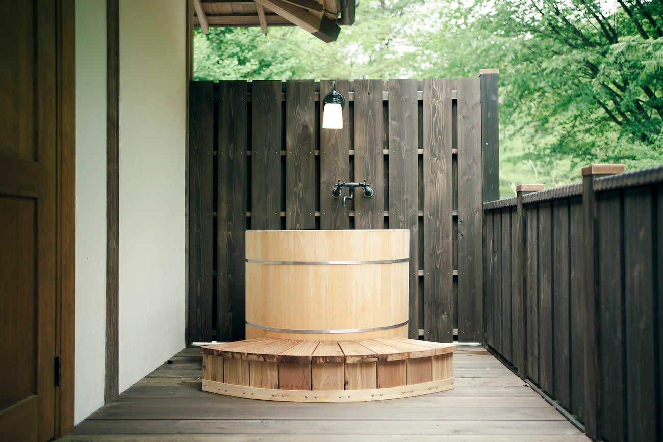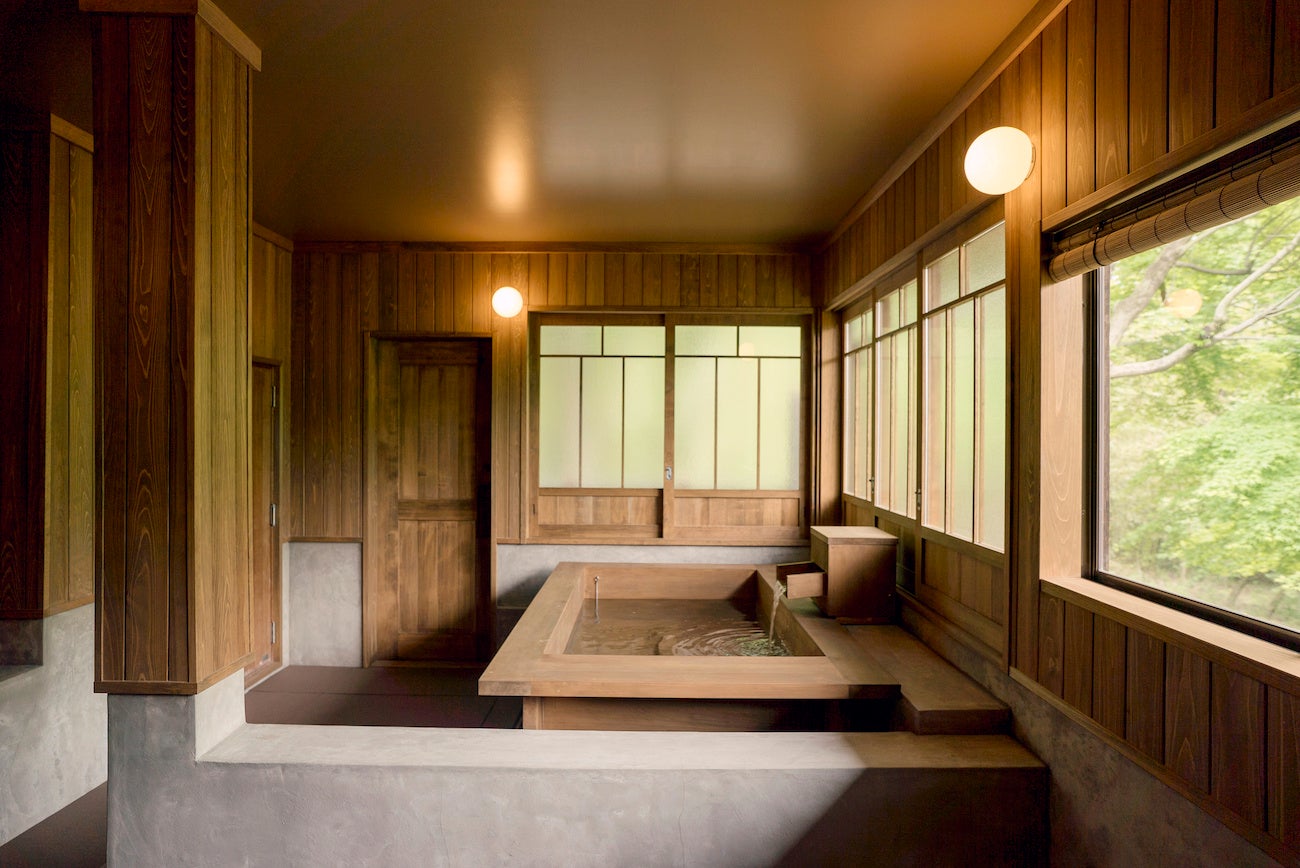 数寄屋造りの様式を取り入れた本館は、かつての格式を感じさせる佇まいをそのままに、現代の快適さを兼ね備えた198㎡の広々とした空間です。天然檜の浴槽やプライベートサウナを備え、心落ち着く特別な滞在をお楽しみいただけます。