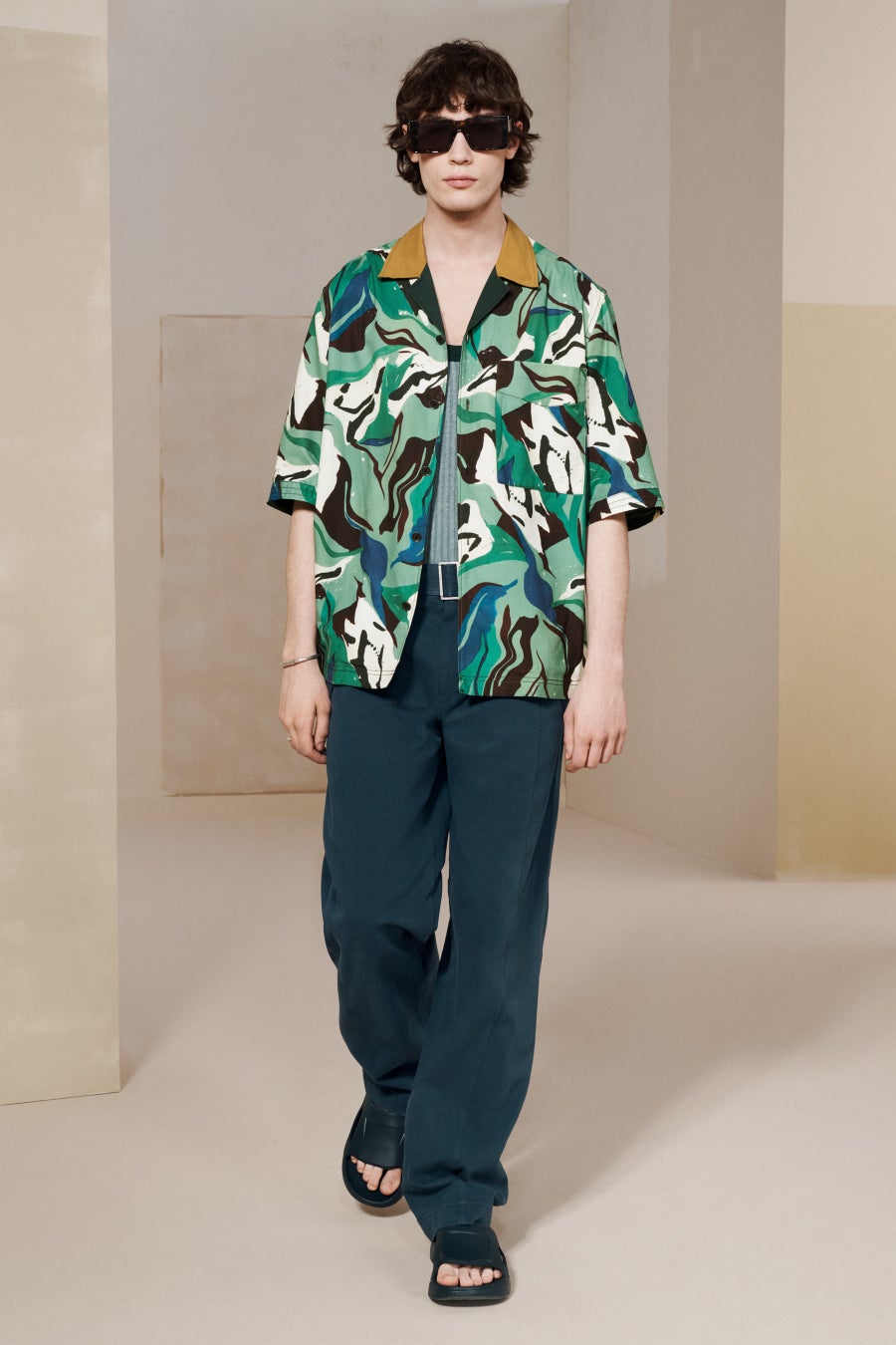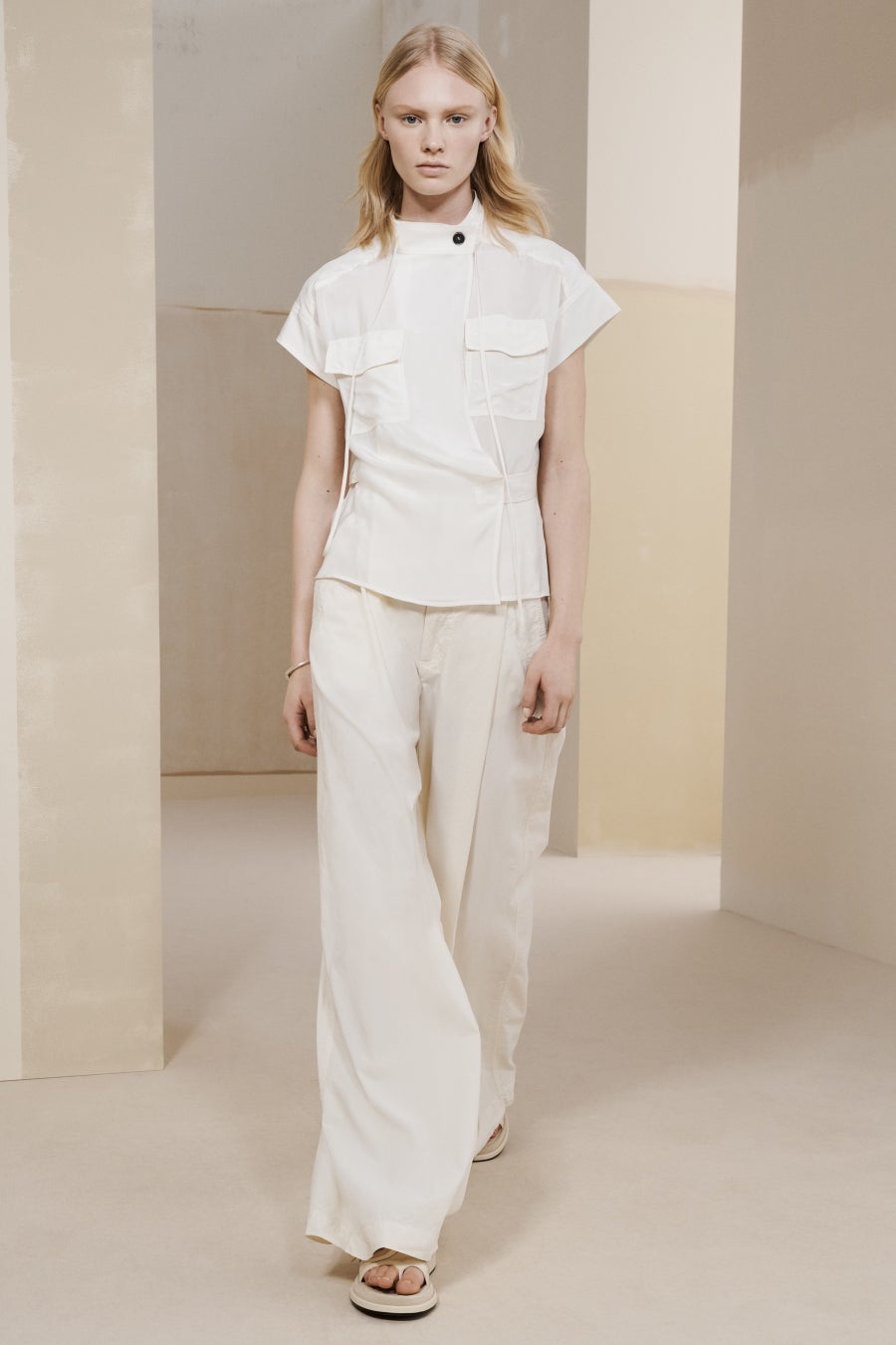 ■アイテム: ゆったりとしたシルエットのローウエストチノパンツなど、実用的なアイテムを現代的に再構築