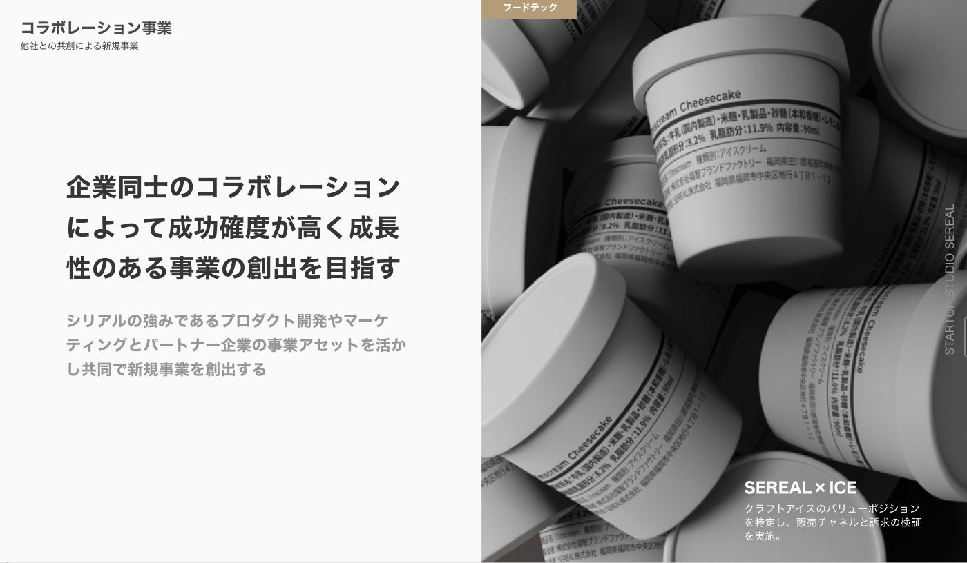 コラボレーション事業では、SEREALの強みであるデジタルプロダクトの開発やマーケティングのアセットと、地方中核企業などのパートナー企業が持つ事業アセットをコラボレーションすることで、それぞれの企業単体では実現が難しい新規事業を創出します。