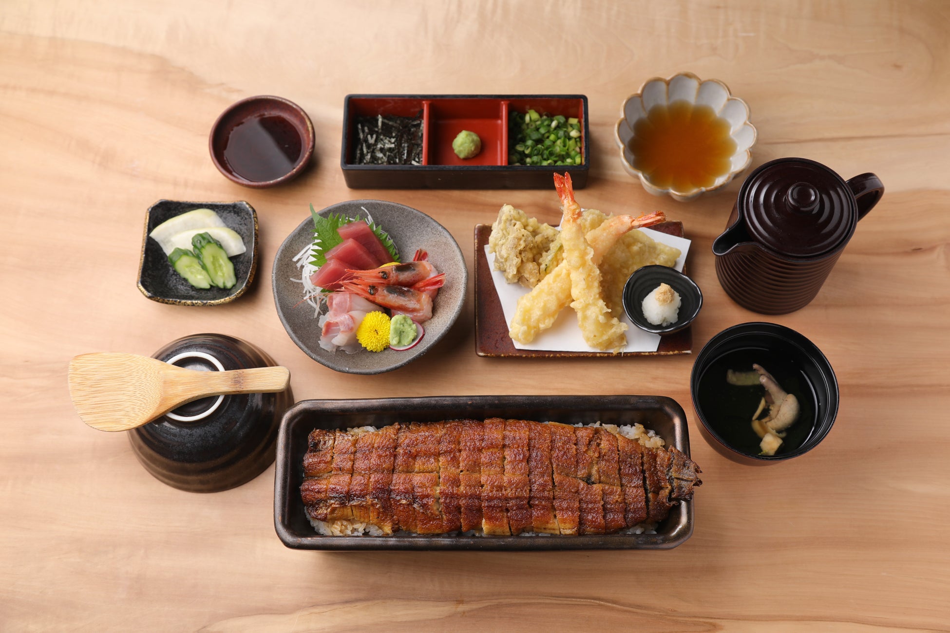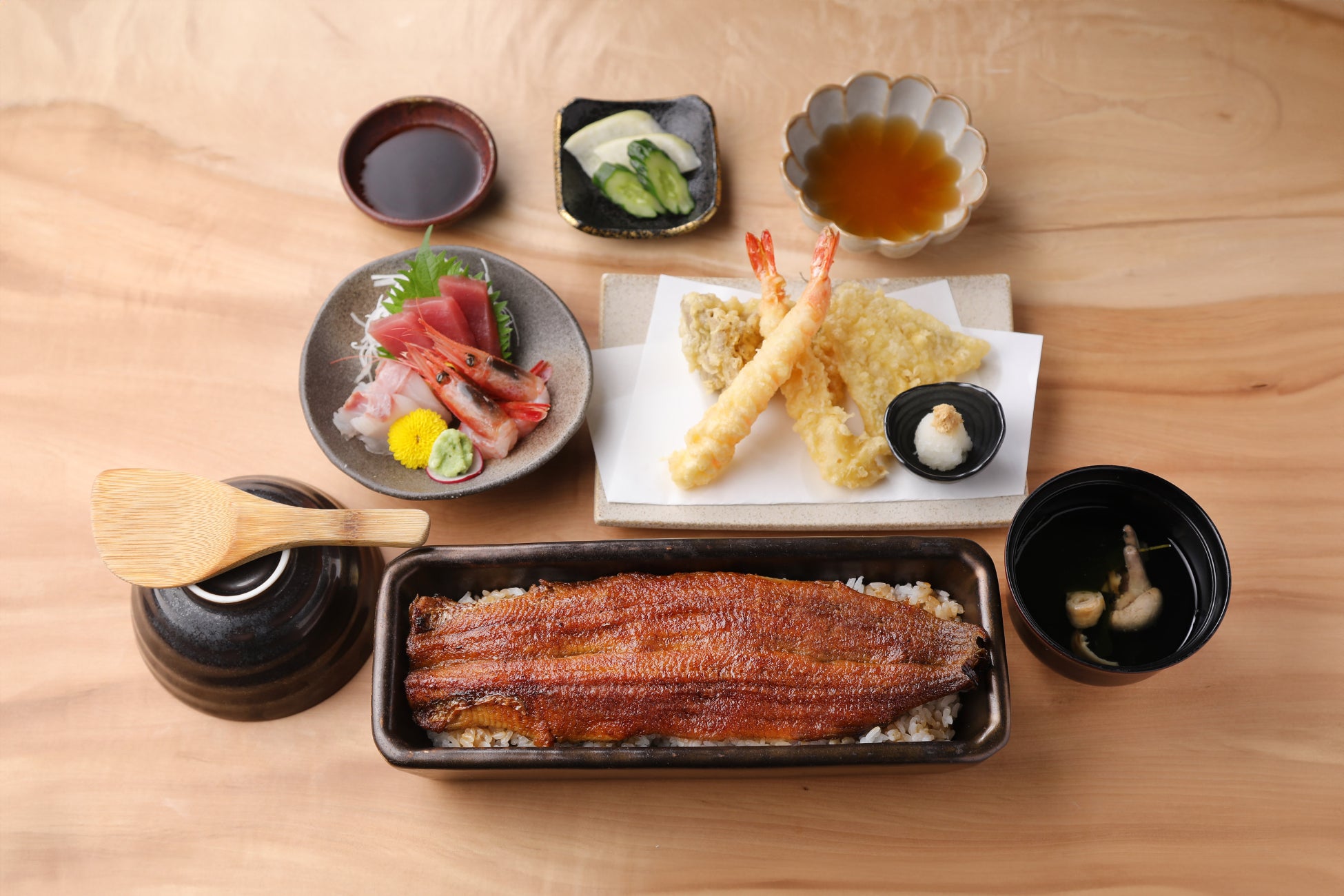 今回オープンする「なんばセントラルイータリー店」では、海外からのお客様にもご満足いただけるよう、名物「一本うなぎ」に加え、お刺身や天ぷらを組み合わせた御膳メニューを新たにご用意しました。卸問屋ならではの新鮮な素材を活かし、多彩な日本料理を一度に楽しめる内容です。