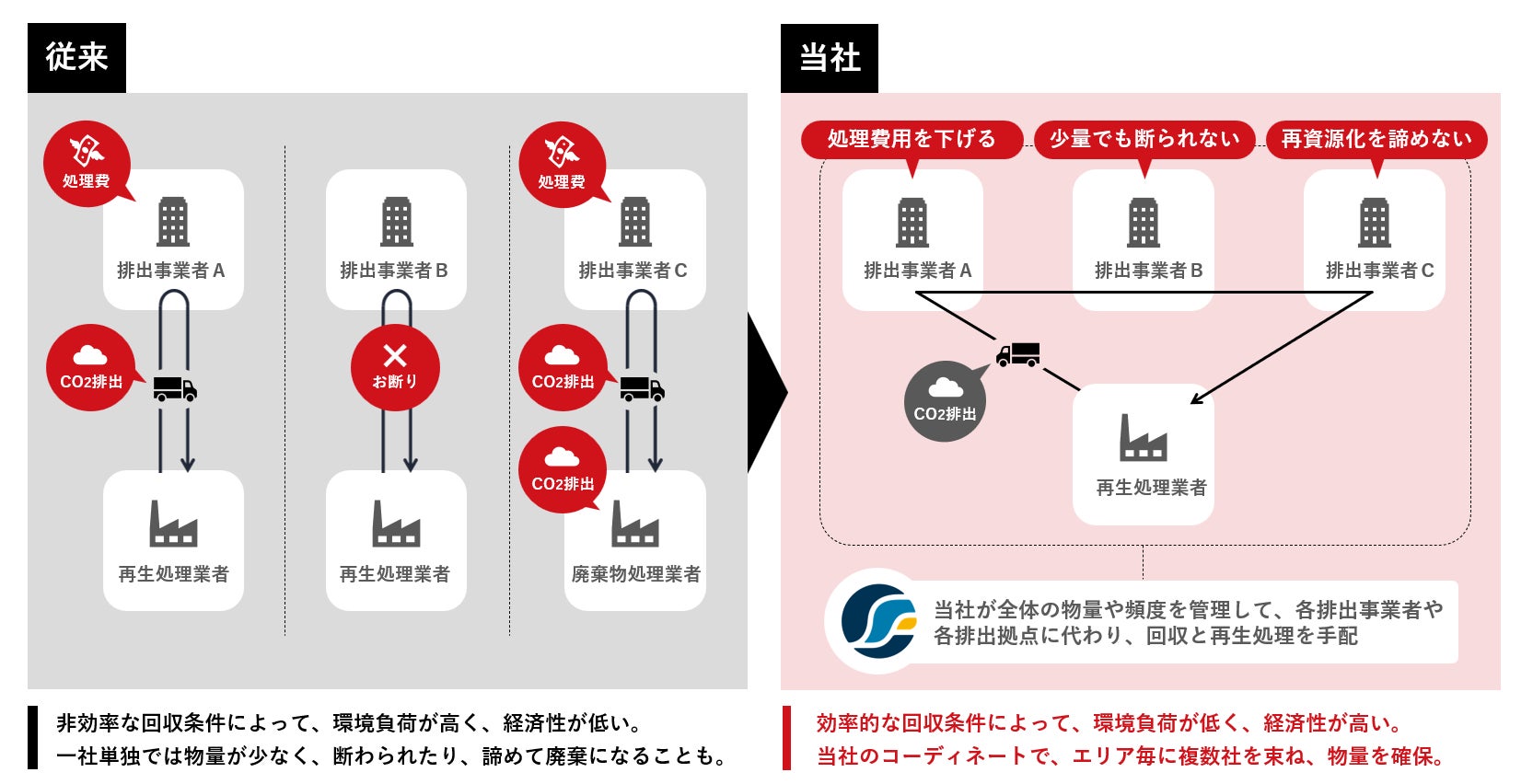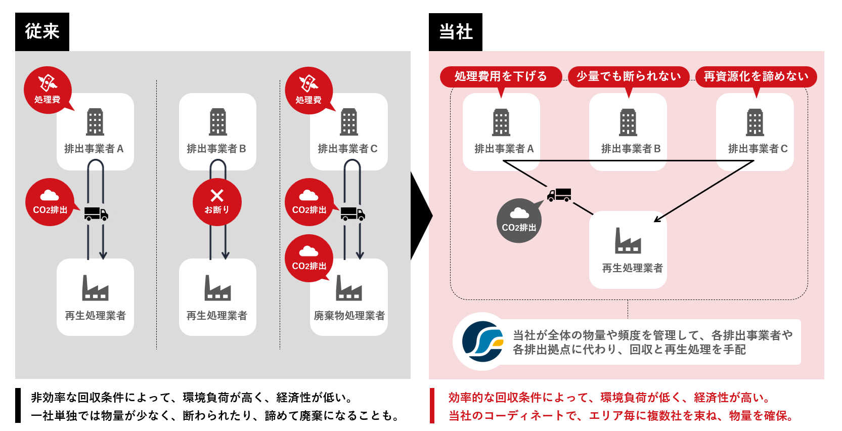 今後もより多くの企業に再資源化を推進するため、たとえば、廃棄物処理にお困りのテナントから相談を受けやすい不動産会社やビルの管理会社、管理が難しい多拠点展開している企業などと連携し、各事業所を積極的に繋いで資源循環の輪を広げていきます。