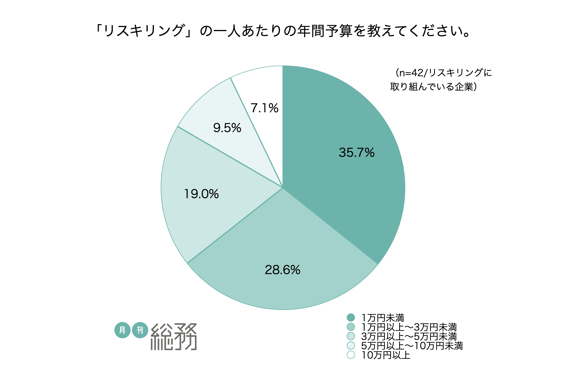 - リスキリングの1人あたりの年間予算は「1万円未満」が最多
