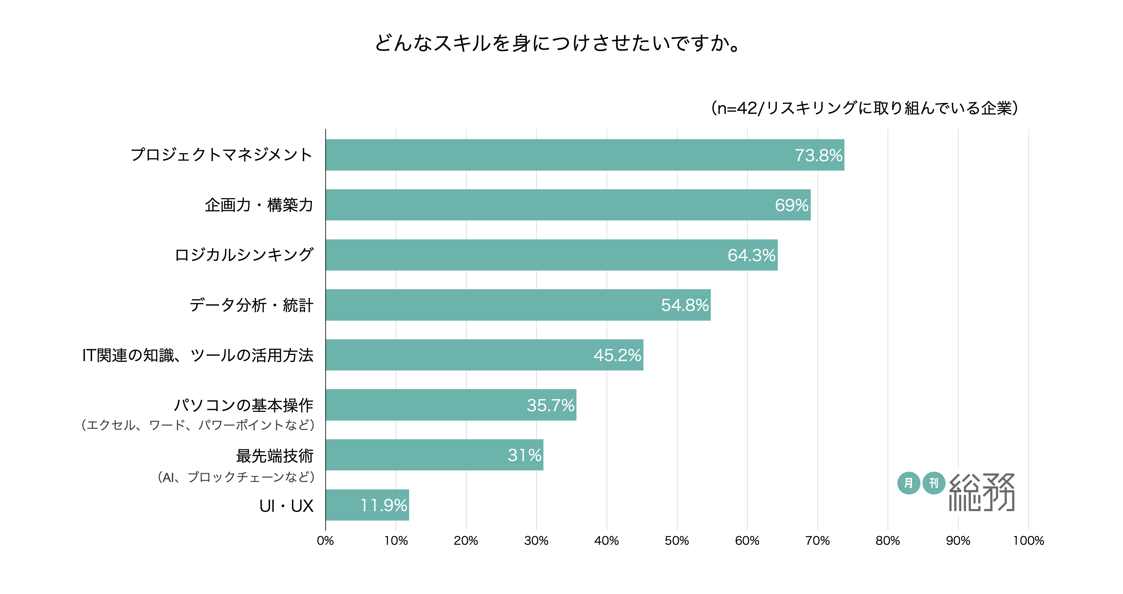 - 身につけさせたいスキルは「プロジェクトマネジメント」「企画力・構築力」「ロジカルシンキング」など
