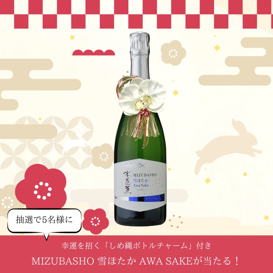 幸運を招く「しめ縄ボトルチャーム」付きのMIZUBASHO 雪ほたか AWA SAKE(15,000円相当)を5名様にプレゼントいたします。