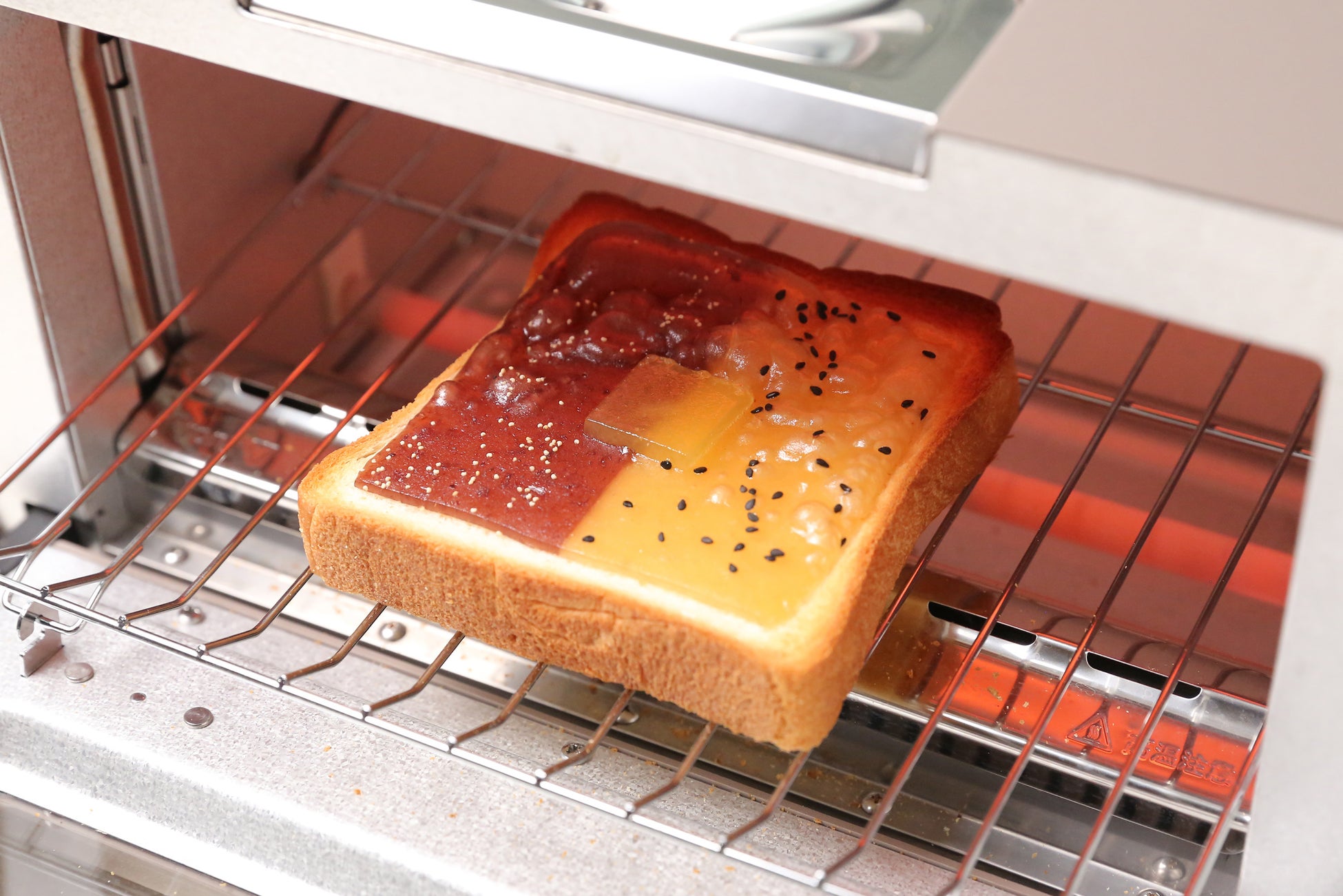 ⾷パンにスライスようかんをのせて、トースターで焼きます。